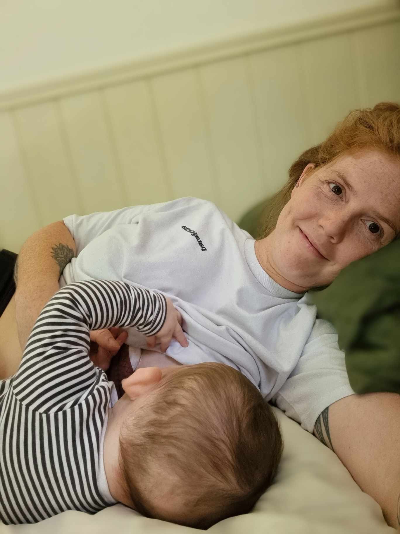 I also found sitting up to feed in those first weeks really difficult. During labour I had pushed for 4.5 hours and as a result I had what felt like, the worst haemorrhoids of all time. At one point during labour I had looked with a mirror to see if I could see babies head and I was seriously disappointed when I could see no head at all but instead, what appeared to be the inside of my body on the outside in the form of haemorrhoids. (Don’t worry they’re well healed now and back inside my body, phew!) As you can imagine (after that graphic description) it was absolute agony to sit up so I quickly figured out side lie feeding which absolutely saved my but, literally, haha! When he was really little side lie feeding didn’t actually work that well as he would somehow get milk up his nose and couldn’t breathe and it just didn’t feel right for him. After a few weeks though he seemed to grow enough that he could handle it and side lie feeding become my most preferred way of feeding from then on.